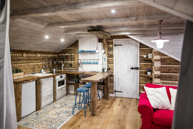 Apartmán Nebe je plný útulnosti a kouzla. V jeho dřevěné kuchyni najdete veškeré vybavení, které potřebujete pro přípravu svých oblíbených pokrmů. Můžete si zde vychutnat večeři ve dvou nebo společně s dětmi.