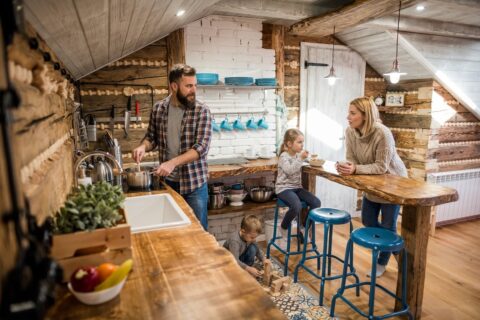 Základní vybavení v kuchyni a koupelně (WC papír, utěrka, gel na nádobí, tablety do myčky, káva, čaj, koření, olej apod)
