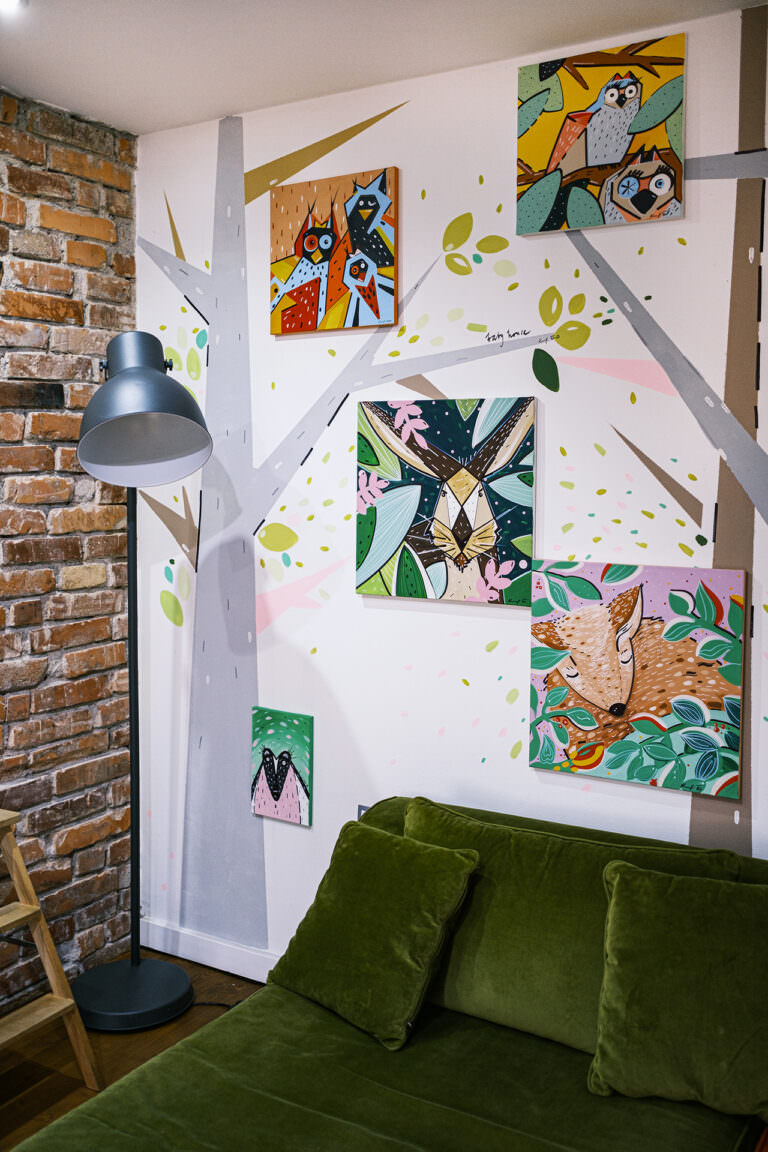 Na stěnách apartmánu najdete malůvky zvířátek z lesa, které vytvářejí příjemnou atmosféru a dodávají apartmánu svůj jedinečný charakter.
